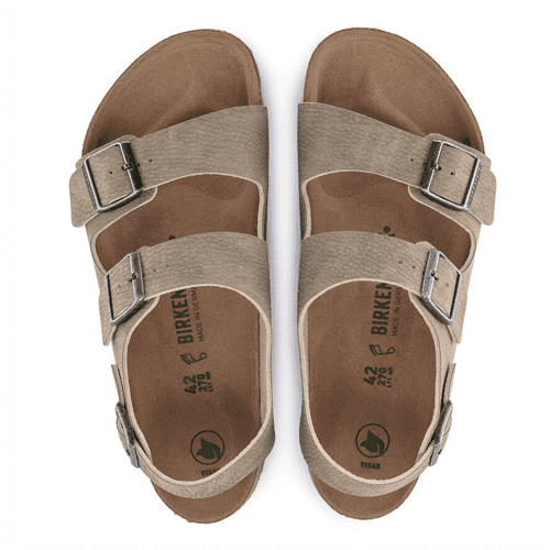 - Details: two straps, each with an individually adjustable metal pin buckle; ankle strap; vegan; color-coordinated outsole