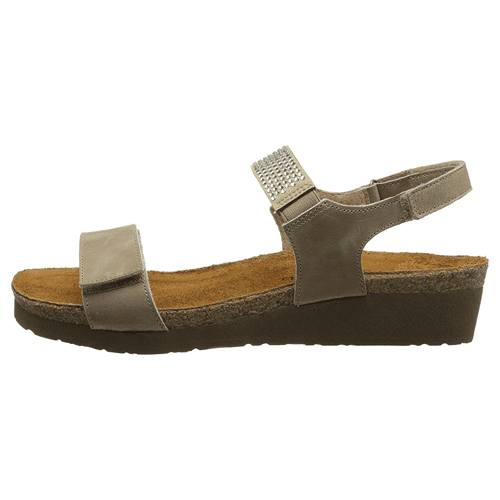 The Lisa is a feminine sandal with rhinestone accents across the instep strap, This style features a hook and loop backstrap and front strap. Naot’s anatomic cork & latex footbed is wrapped in a pampering suede and molds to the shape of the foot with wear.