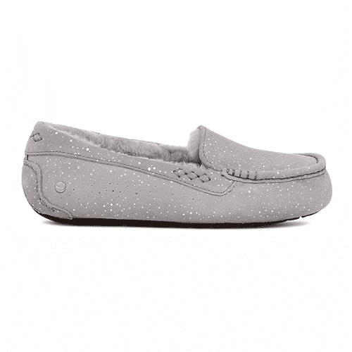 We’re star-struck by the latest version of our Ansley. Crafted from soft suede, it features tiny metallic spots that shimmer like the night sky. Finished with cloud-like UGGplush™ lining and a sole that travels both indoors and out, it’s a slipper you can live in.